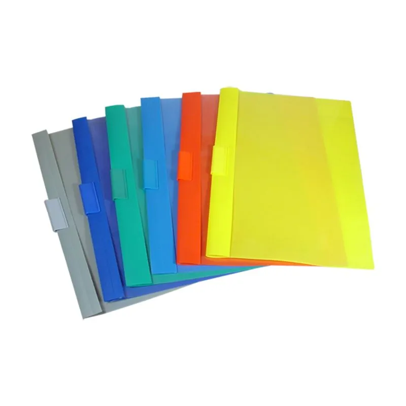 Carpeta con clip tamaño A4, ideal para sujetar documentos de manera rápida y segura.
