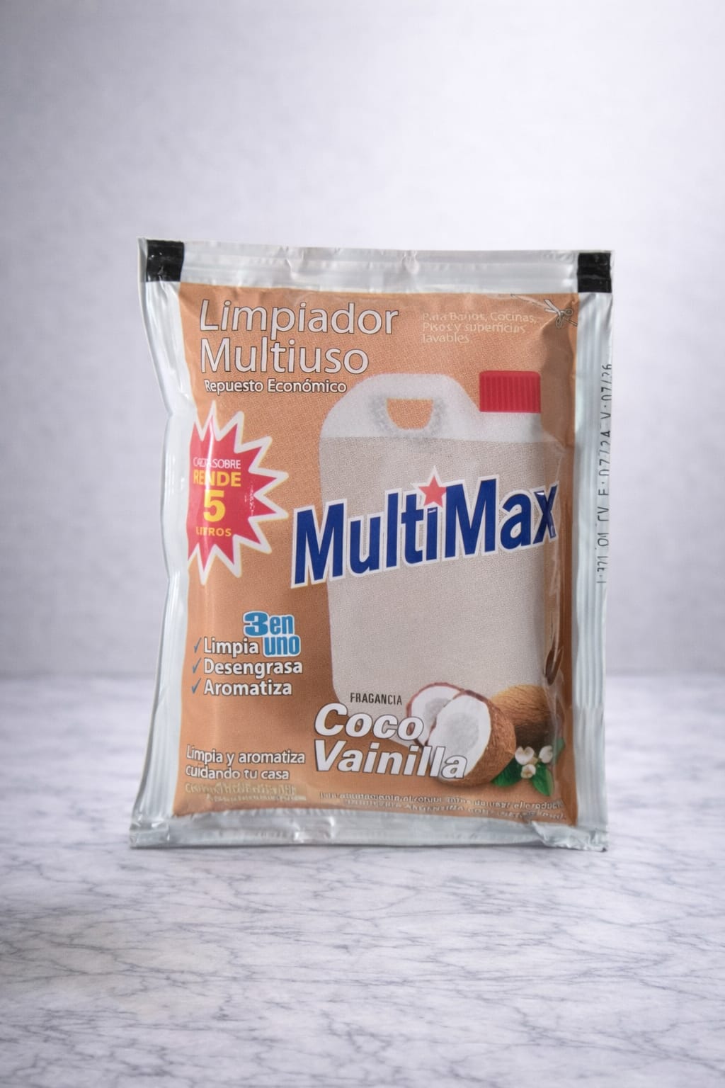 Desodorante concentrado de 5 litros. Limpia, desengrasa y perfuma de una sola pasada. Fragancias: Citronella, Limón, Lavanda, Cherry, Pino, Marina y Coco Vainilla.